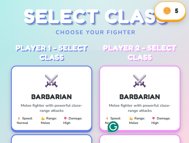 In this game, use all kinds of classes to fight another player! Play by yourself or with a friend. This game is still in beta.